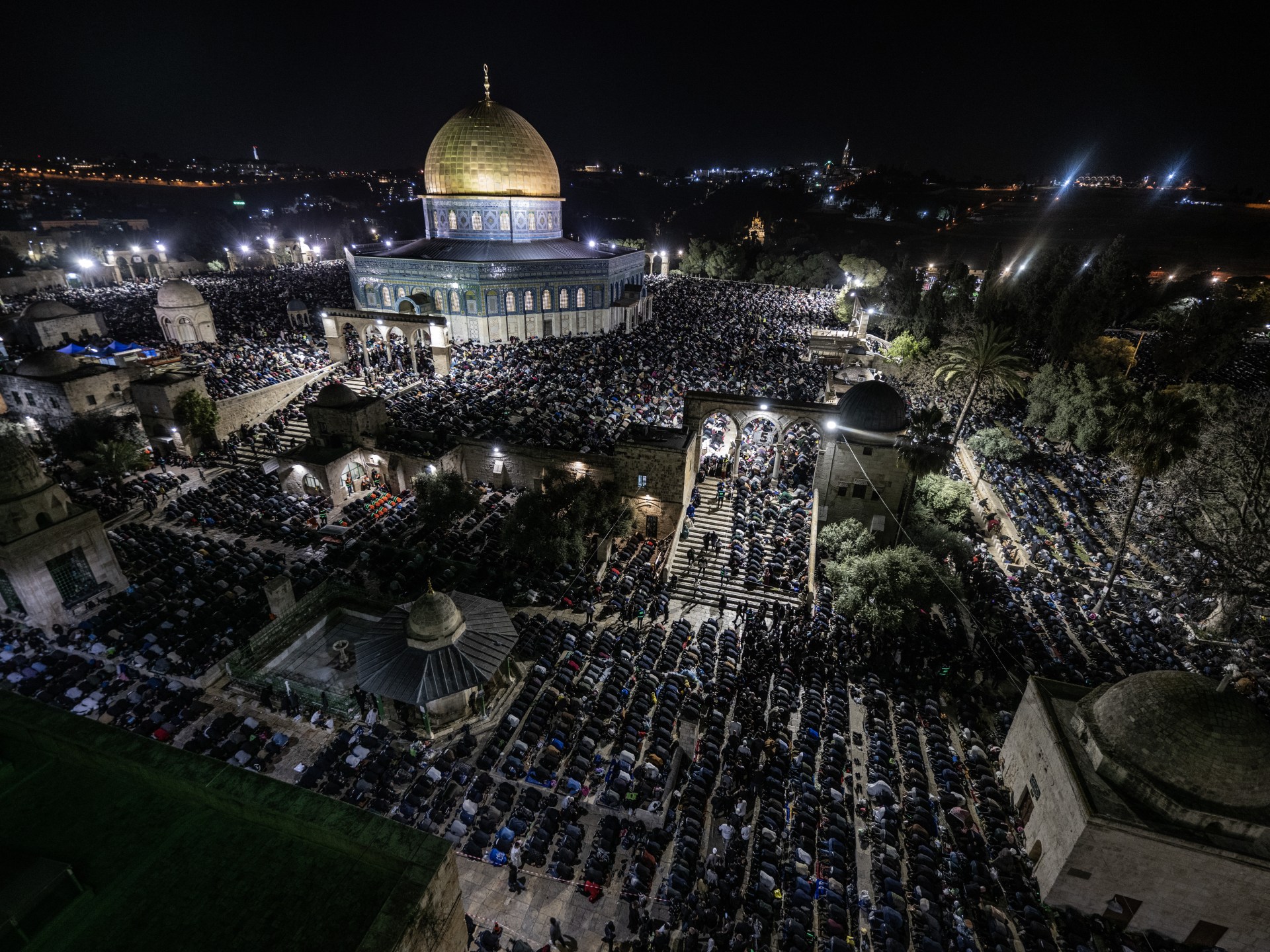 أعلنت دائرة الأوقاف الإسلامية في القدس أن 200 ألف مصلٍّ أدوا صلاتي العشاء والتراويح بالمسجد الأقصى الليلة، وكان نحو 125 ألفا أدوا صلاة الجمعة الأخيرة من شهر رمضان في المسجد الأقصى وسط إجراءات أمنية مشددة فرضتها سلطات الاحتلال الإسرائيلي.