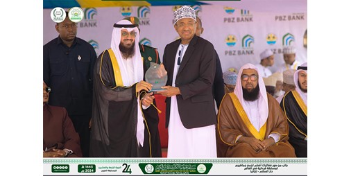 وفي الختام قام فخامة رئيس زنجبار بتسليم رئيس مجلس إدارة جمعية الصفا محمد الشايع درع تذكارية بمناسبة حضوره ودعمه للمسابقة، كما توجه الشايع بالشكر لفخامته لرعايته الكريمة للمسابقة القرآنية الكبرى، مثنياً على جهود مؤسسة الحكمة الخيرية في تنظيمها المتميز لهذه المسابقة القرآنية الفريدة، داعياً إلى دعم هذه الجهود الرامية لتخريج أجيال تتحلى بالأخلاق والقيم القرآنية.