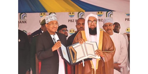 وفي الختام، قام رئيس زنجبار بتسليم رئيس مجلس إدارة جمعية الصفا محمد الشايع درعا تذكارية بمناسبة حضوره ودعمه للمسابقة، كما توجه الشايع بالشكر له لرعايته للمسابقة القرآنية، مثنيا على جهود مؤسسة الحكمة الخيرية في تنظيمها للمسابقة الفريدة، داعيا إلى دعم هذه الجهود الرامية لتخريج أجيال تتحلى بالأخلاق والقيم القرآنية.