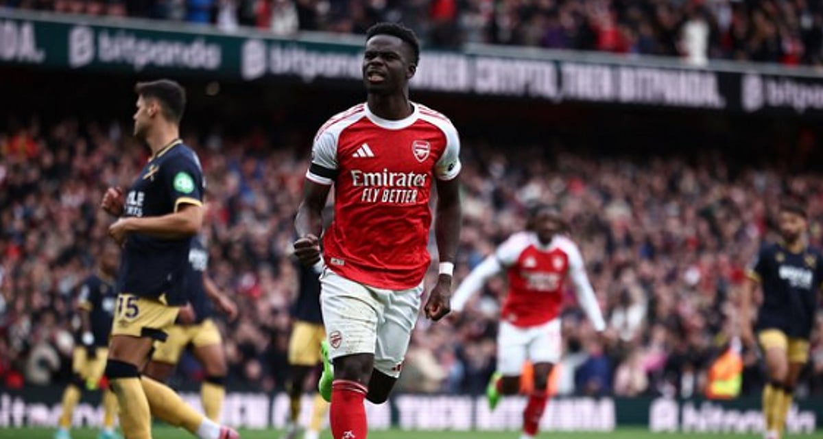 وسجل ثنائية أرسنال لاعب خط الوسط ديكلان رايس في الدقيقة 38، ثم أضاف الجناح الأيمن بوكايو ساكا الهدف الثاني في الدقيقة 67 من ركلة جزاء.
