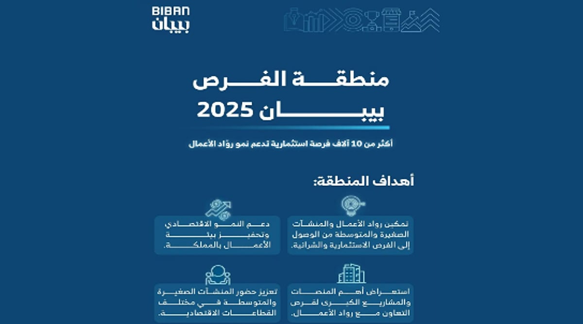كشفت الهيئة العامة للمنشآت الصغيرة والمتوسطة “منشآت” عن (10) آلاف فرصة استثمارية لرواد الأعمال وأصحاب المنشآت الصغيرة والمتوسطة سيتم استعراضها ضمن “منطقة الفرص” في فعاليات ملتقى “بيبان 2025″، الذي يُقام خلال الفترة من 5 إلى 8 نوفمبر المقبل في مركز واجهة الرياض للمعارض والمؤتمرات تحت شعار “وجهة عالمية للفرص”.