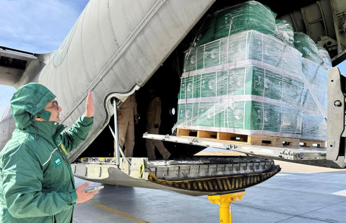 وتحمل الطائرة السعودية الـ(76) على متنها سلالًا غذائية وحقائب إيوائية، تمهيدًا لنقلها إلى المتضررين من الشعب الفلسطيني الشقيق داخل قطاع غزة.