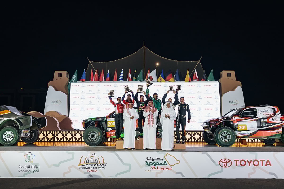 وقال البطل السعودي يزيد الراجحي بعد الفوز باللقب الخامس على التوالي: “الحمد لله على تتويج عام 2025 بلقب خامس على التوالي في بطولة السعودية تويوتا. خضنا موسمًا بثلاث جولات قوية، ورغم إصابتي في الظهر في باها الأردن عدت والحمد لله لأحقق الفوز في جميع الجولات.”