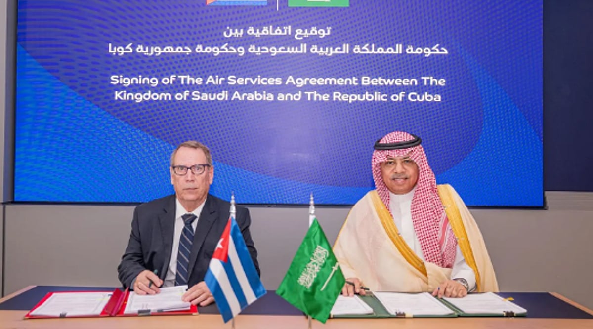 وقع معالي رئيس الهيئة العامة للطيران المدني الأستاذ عبدالعزيز بن عبدالله الدعيلج في مقر مبنى الهيئة الرئيس بالرياض اليوم، اتفاقيةً في مجال خدمات النقل الجوي بين حكومة المملكة العربية السعودية وحكومة جمهورية كوبا، التي مثلها سفير جمهورية كوبا لدى المملكة ماجيل بورتو بارجا، وذلك ضمن أعمال الزيارة الرسمية لرئيس مجلس الوزراء الكوبي لحضور مؤتمر مبادرة مستقبل الاستثمار في نسخته التاسعة في الرياض.