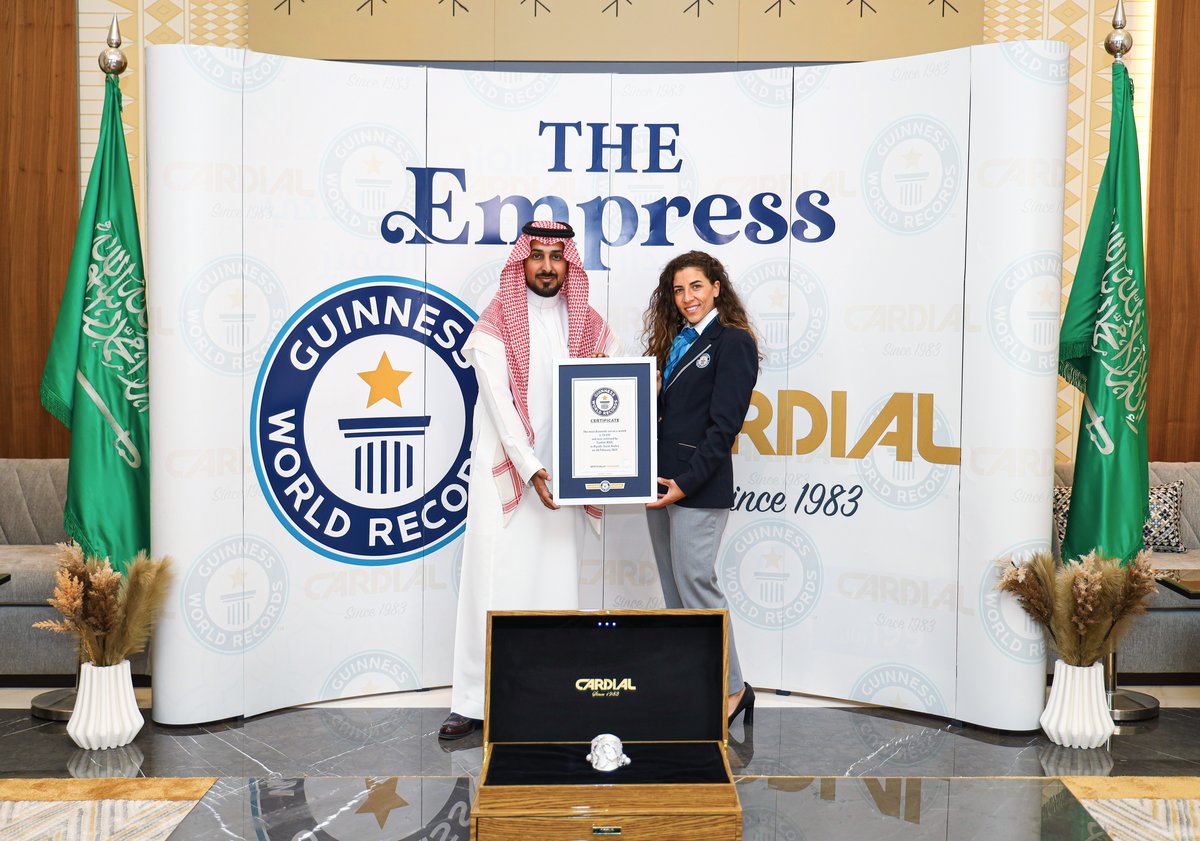 بعد عمل دام 7 أشهر، دخلت كارديال موسوعة جينيس العالمية لتشهد حدث عالمي راقي وإنجاز وطني فريد، بأكبر ساعة ألماس في العالم زينت بـ 18664 ألماسة نقية.