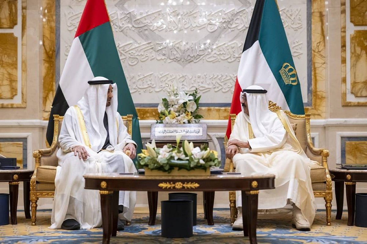 بحث الشيخ محمد بن زايد آل نهيان رئيس دولة الإمارات مع الشيخ مشعل الأحمد الجابر الصباح أمير دولة الكويت في العاصمة الكويت، العلاقات الأخوية والتعاون.