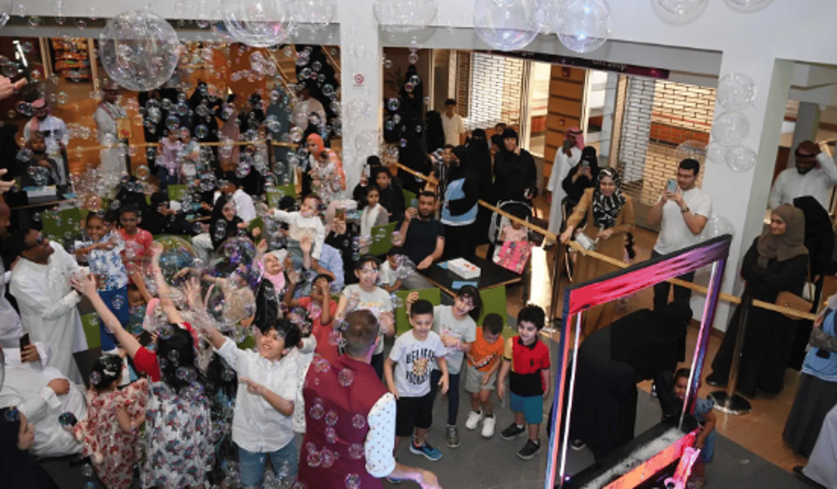 واشتمل مركز إثراء على العديد من الفعاليات كتجربة “فقاعات الصابون” وصناعة زينة العيد، ومع اختتام فعاليات العيد أحيت الفرق أنشطة وبرامج العيد بتوهج وتصفيق حار من الحضور.