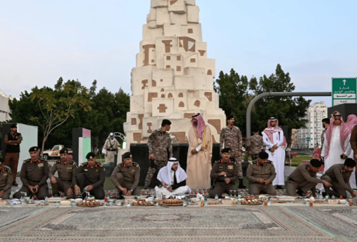 شارك الأمير سعود بن نهار بن سعود بن عبدالعزيز محافظ الطائف، قادة ومنسوبي القطاعات الأمنية بالمحافظة, الافطار الرمضاني في ميدان “باب الحزم” بالطائف، وذلك خلال جولة ميدانية قام بها لعدد من مواقع عملهم, بحضور مدير شرطة المحافظة اللواء عثمان اليوسف، ومديري القطاعات الأمنية بالمحافظة.