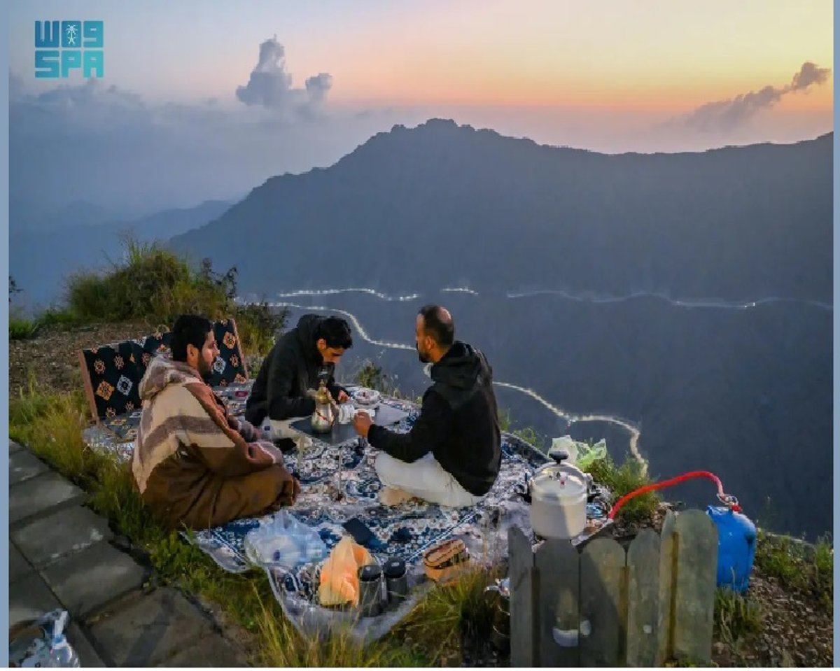 دفعت الأجواء المعتدلة المفعمة برائحة الأمطار التي شهدتها اليوم منطقة الباحة، الصائمين للتنزه والإفطار على المرتفعات الشاهقة.
