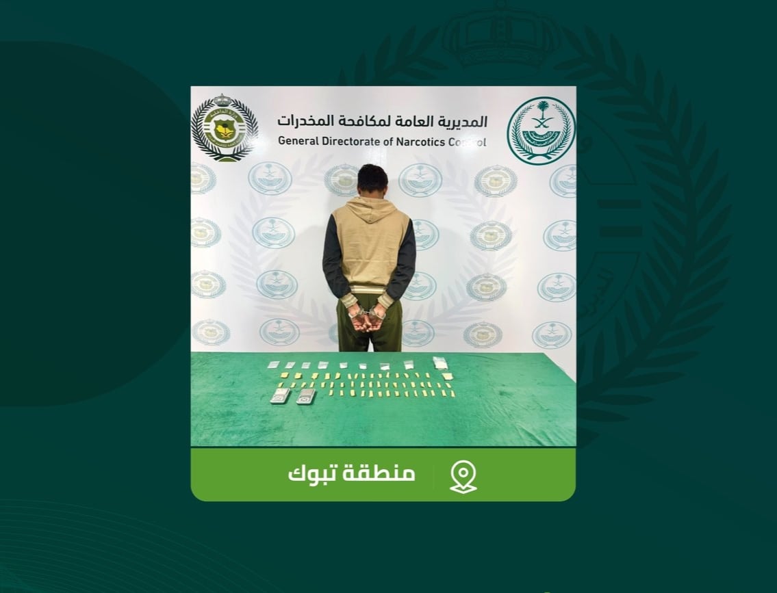 ألقت المديرية العامة لمكافحة المخدرات، القبض على مقيم من الجنسية الباكستانية بمنطقة تبوك لترويجه مادة الميثامفيتامين المخدر (الشبو).