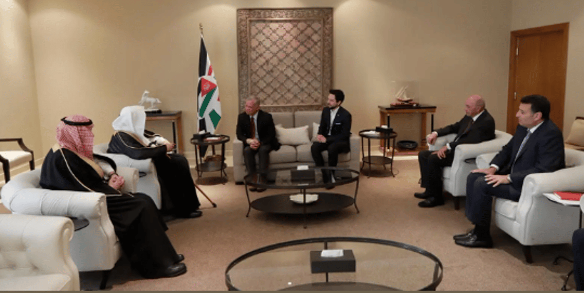 حضر اللقاء رئيس مجلس الأعيان فيصل الفايز، ورئيس مجلس النواب أحمد الصفدي، وسفير خادم الحرمين الشريفين لدى الأردن نايف بن بندر السديري، ومدير مكتب جلالة الملك الدكتور جعفر حسان.