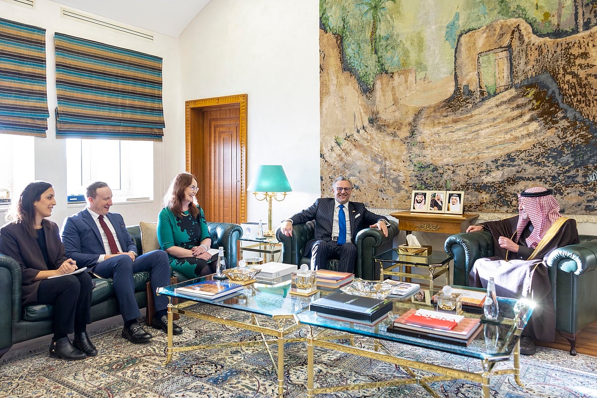 حضر الاستقبال، مستشار وزير الخارجية للشؤون السياسية الأمير مصعب بن محمد الفرحان، والقائم بالأعمال في سفارة الولايات المتحدة الأمريكية لدى المملكة السيدة أليسون ديلورث.