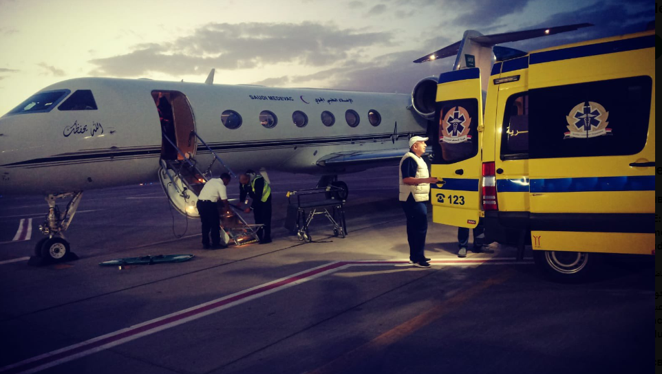 تابعت سفارة المملكة لدى جمهورية مصر العربية، والقنصلية العامة بالإسكندرية بالتعاون مع الجهات المصرية المعنية، نقل مواطنين اثنين من مطار القاهرة الدولي اليوم عبر طائرة الإخلاء الطبي، استدعت حالتاهما الطبية نقلهما لاستكمال علاجهما في المملكة.