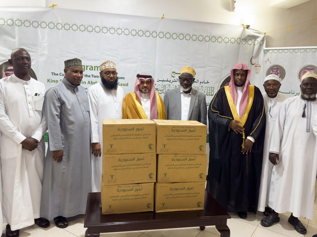 دشّنت وزارة الشؤون الإسلامية والدعوة والإرشاد، ممثلة بالملحقية الدينية بسفارة المملكة في تنزانيا، أمس، برنامجي هدية خادم الحرمين الشريفين من التمور وإفطار الصائمين في العاصمة التنزانية دار السلام، خلال الحفل الذي أقامته الملحقية، بحضور سفير خادم الحرمين الشريفين لدى جمهورية تنزانيا يحيى عكيرش، والملحق الديني الشيخ متعب الشمري، والأمين العام للمجلس الأعلى للشؤون الإسلامية نوح مروما، وعدد من الشخصيات ورؤساء الجمعيات والهيئات الإسلامية بتنزانيا.