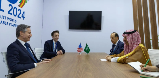 التقى الأمير فيصل بن فرحان بن عبدالله وزير الخارجية، أمس الأربعاء، معالي وزير خارجية الولايات المتحدة الأمريكية أنتوني بلينكن، وذلك على هامش اجتماع وزراء خارجية دول مجموعة العشرين في مدينة ريو دي جانيرو البرازيلية.