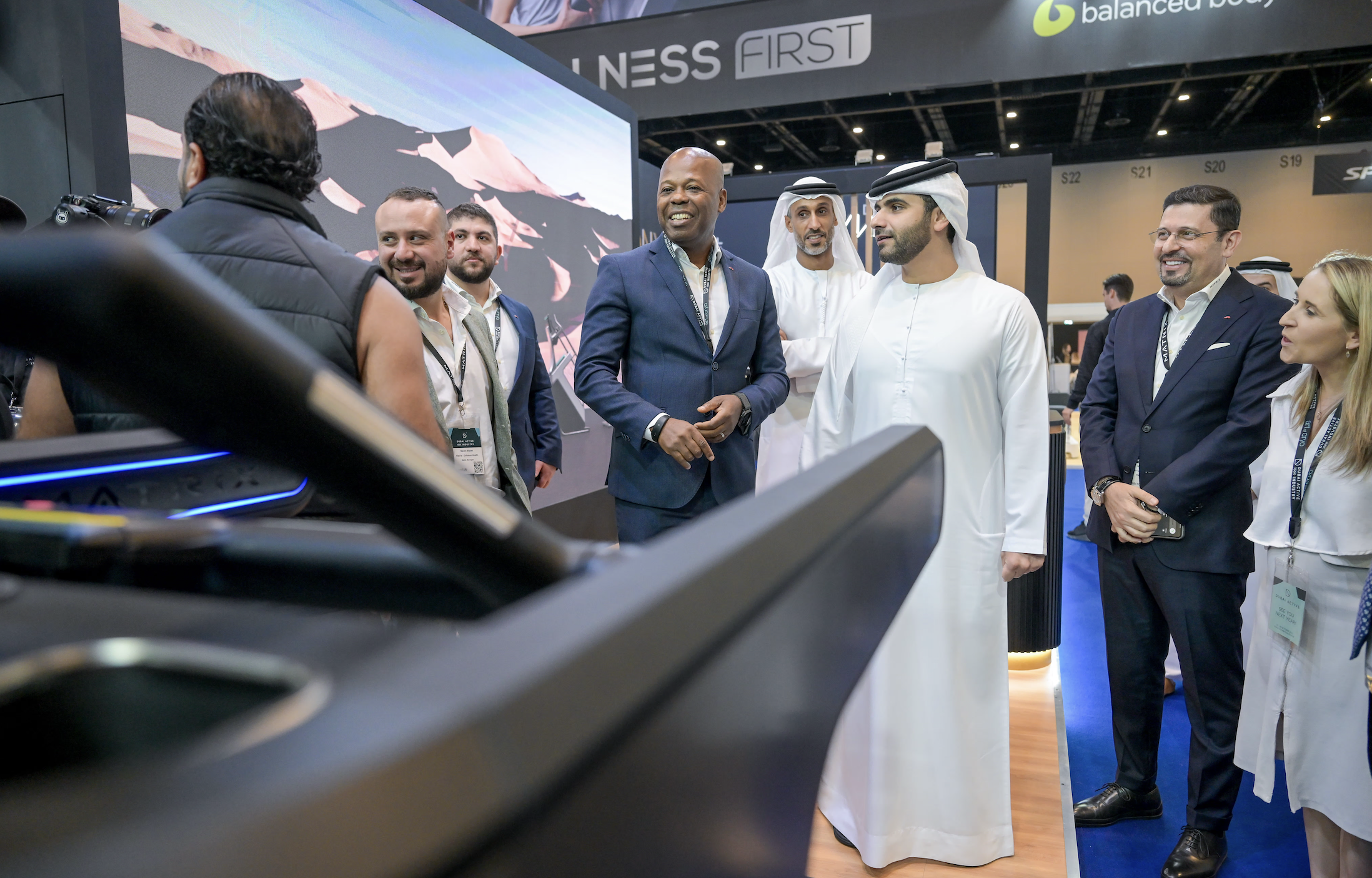 وتفقّد سمو الشيخ منصور بن محمد بن راشد آل مكتوم عدداً من أجنحة الشركات العارضة، يرافقه سعادة خلفان بلهول، نائب رئيس مجلس دبي الرياضي، وسعادة سعيد حارب، أمين عام مجلس دبي الرياضي، وفرانشيسكو سانتا، الرئيس التنفيذي للمجموعة الإيطالية للمعارض في الشرق الأوسط وراشيل تشاتام، المدير العام للشركة، حيث استمع سموه إلى شرح حول جديد الدورة الثامنة من المعرض والشركات العالمية الكبرى المشاركة، وما تعرضه من أحدث منتجاتها في مجالات التدريب واللياقة وبناء الأجسام والتغذية الصحية والملابس والأجهزة الرياضية، إلى جانب عدد من الفعاليات المتنوعة المُقامة في إطار المعرض من بينها بطولة بناء الأجسام للهواة التي يشارك فيها أكثر من 3000 هاوٍ.