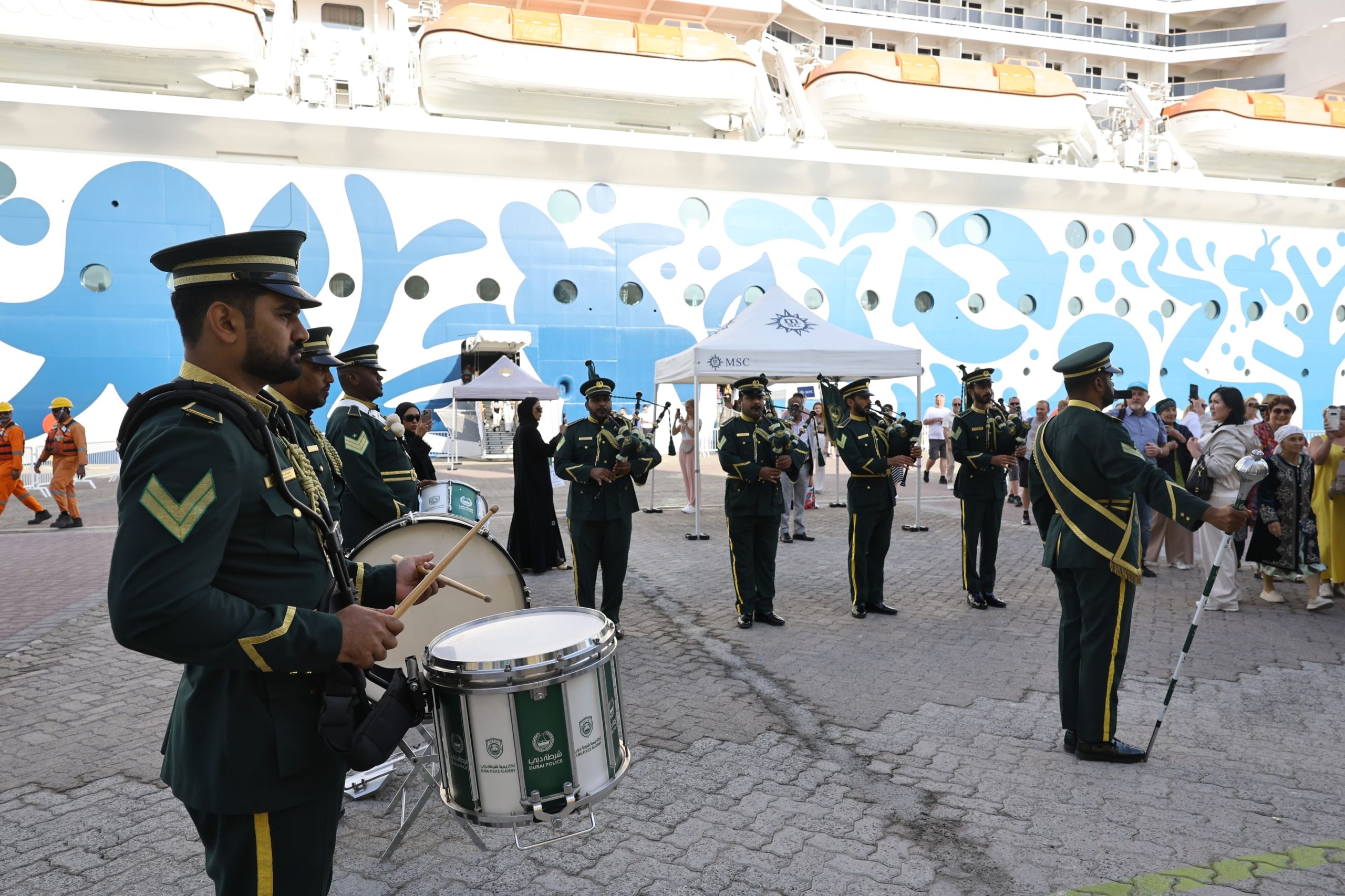 نظمت القيادة العامة لشرطة دبي، ممثلة في إدارة الشرطة السياحية، استقبالاً مميزاً لنحو 7000 زائر، بينهم 5400 سائح و1600 من طاقم سفينة “MSC Cruises” العملاقة فور وصولها ميناء راشد، وذلك ضمن فعاليات مبادرة “فرحة سائح” التي أطلقتها الشرطة لتقديم تجربة استثنائية للزوار وترسيخ مكانة الإمارة كواحدة من أكثر الوجهات العالمية أمانا وضيافة.