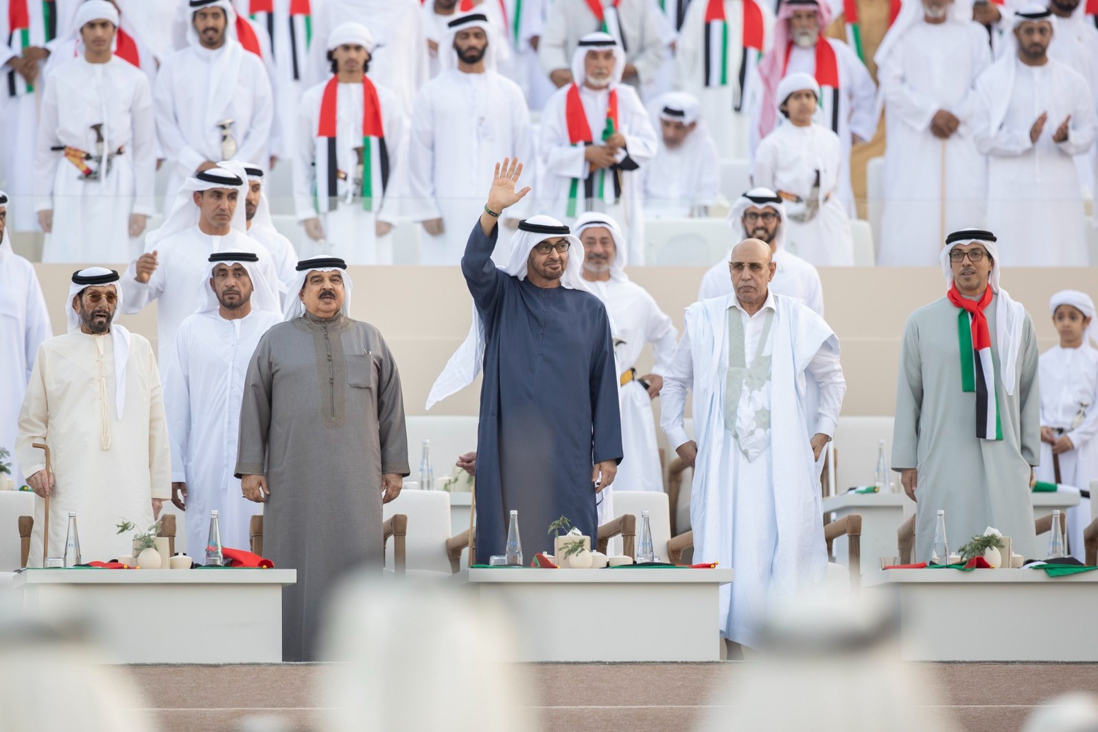شهد صاحب السمو الشيخ محمد بن زايد آل نهيان، رئيس الدولة، حفظه الله، والشيوخ وضيوف الدولة اليوم “مسيرة الاتحاد ” التي انطلقت ضمن فعاليات مهرجان الشيخ زايد التراثي لعام 2023 في منطقة الوثبة في أبوظبي بمناسبة عيد الاتحاد الـ 52 لدولة الإمارات.