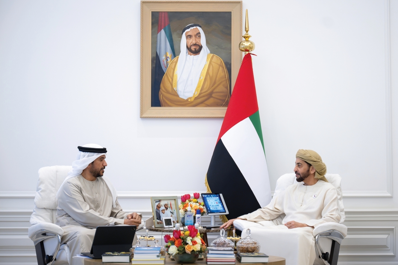 استقبل سمو الشيخ حمدان بن زايد آل نهيان ممثل حاكم أبوظبي في منطقة الظفرة في قصر النخيل المهندس عويضه مرشد المرر رئيس دائرة الطاقة في أبوظبي.