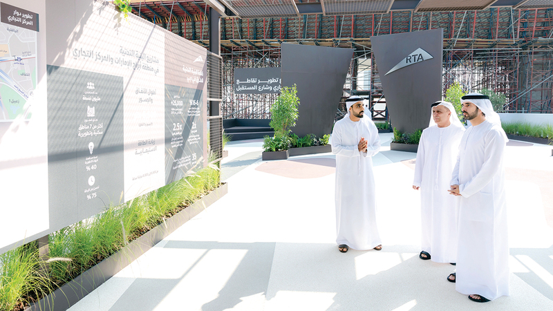 وكان في استقبال سموه لدى وصوله لموقع مشروع تطوير دوار المركز التجاري، المدير العام ورئيس مجلس المديرين في هيئة الطرق والمواصلات مطر الطاير، حيث استمع سموه لشرحه عن كفاءة البنية التحتية لشبكة الطرق والنقل في دبي، حيث يزيد إجمالي طول شبكة الطرق على 25 ألف كيلومتر مسرب، وتستوعب أكثر من 3.5 ملايين مركبة فـي اليوم الواحد، وتفوقت دبي عالمياً في سرعة وكفاءة تطوير شبكة النقل، إذ بلغ متوسط طول مسارات الطرق التي نفذتها الهيئة سنوياً ما يقارب 829 كيلومتراً، أي ضعف المعدل العالمي البالغ نحو 400 كيلومتر، وبلغت كفاءة التكلفة لكل كيلومتر في إنشاء الطرق السريعة والمترو بين 1.5 و2.5 مرة أفضل مقارنة بمدن عالمية مثل موسكو وشنجن وميلان، وأسهمت مشاريع الطرق والنقل في ارتفاع قيمة العقارات بنسبة تتراوح بين 6 و16%، وتعتزم الهيئة تنفيذ 72 مشروعاً لتطوير شبكة الطرق (شاملة المناطق التطويرية) خلال الفترة من 2025 إلى 2027، تقدر تكلفتها بنحو 35 مليار درهم.