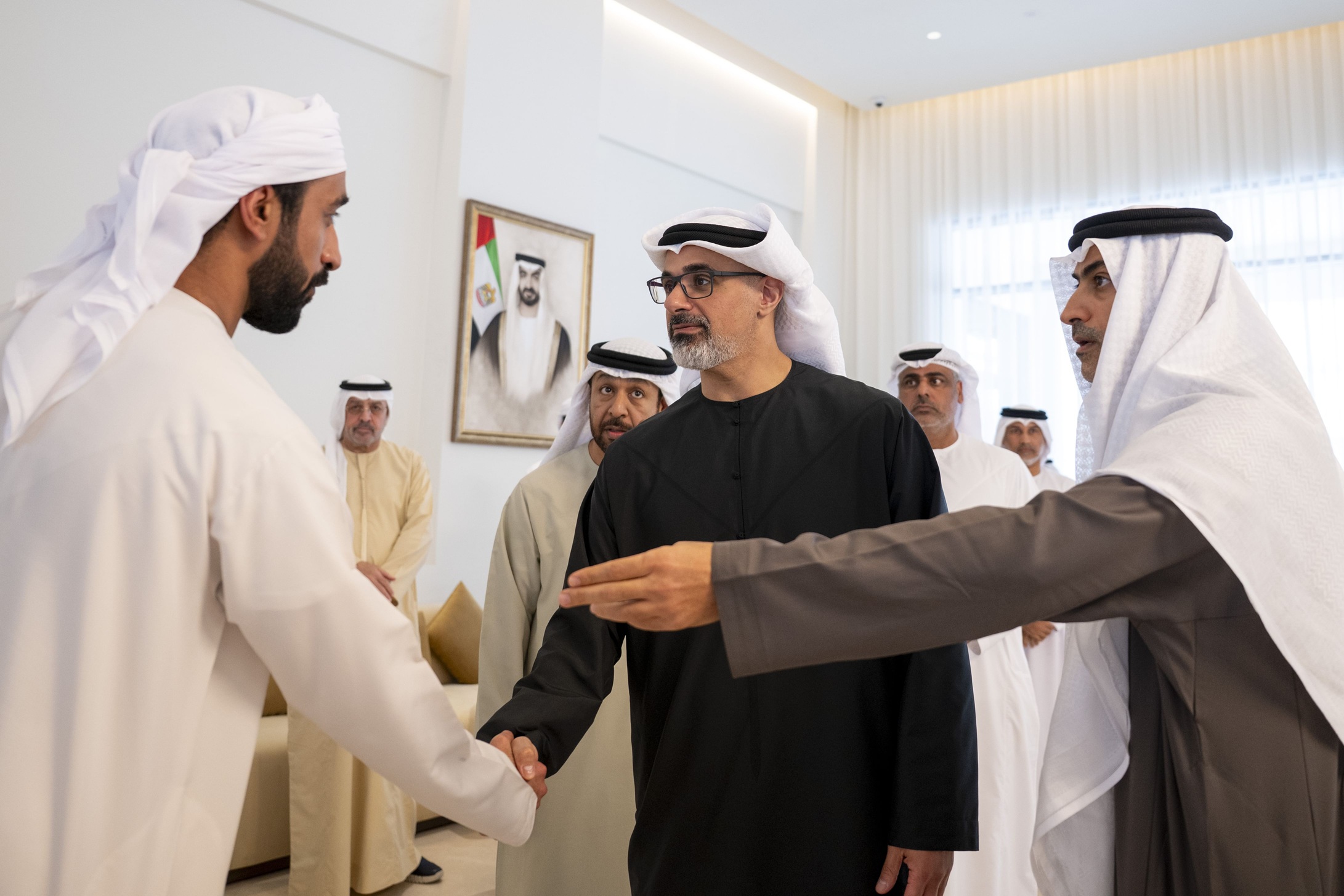 قدم سمو الشيخ خالد بن محمد بن زايد آل نهيان، ولي عهد أبوظبي، رئيس المجلس التنفيذي لإمارة أبوظبي، واجب العزاء إلى محمد بن حمد بن راشد الهاجري في وفاة والده.