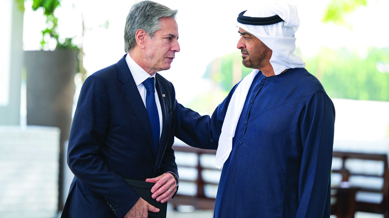 استقبل صاحب السموّ الشيخ محمد بن زايد آل نهيان، رئيس الدولة، حفظه الله، أمس، وزير خارجية الولايات المتحدة الأميركية، أنتوني بلينكن، الذي يزور الدولة.