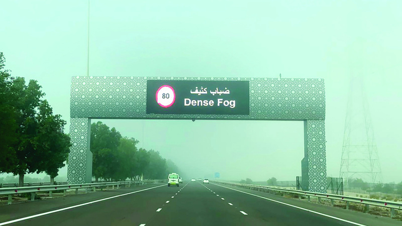 دعت شرطة أبوظبي السائقين إلى الالتزام بالقيادة الآمنة، وبالسرعات المحددة (80 كيلومتراً في الساعة) أثناء تشكّل الضباب، وترك مسافة أمان كافية.