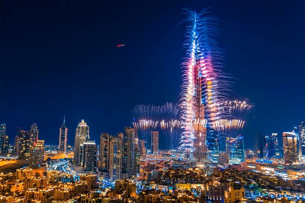 بدورها تشهد إمارة دبي ليلة رأس السنة عروضاً للألعاب النارية في 32 موقعا، أبرزها منطقة برج خليفة، وذا بيتش وبلو واترز (جي بي آر)، وجزيرة النخلة، والكايت بيتش، وغيرها.
