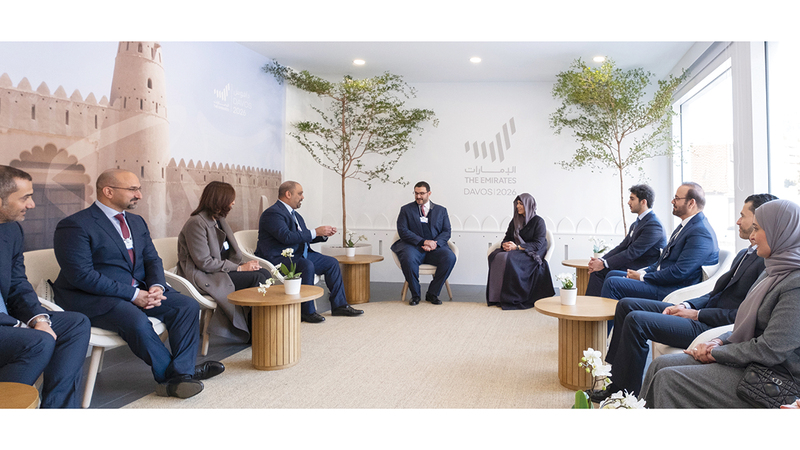 وجرى اللقاء في إطار المشاركة الفاعلة لدولة الإمارات العربية المتحدة في أعمال المنتدى الاقتصادي العالمي، الذي تستضيفه مدينة دافوس، ويُعد منصة دولية رفيعة تجمع قادة الدول وصنّاع القرار وكبار المسؤولين والخبراء من مختلف أنحاء العالم لمناقشة أبرز القضايا الاقتصادية والتنموية العالمية.