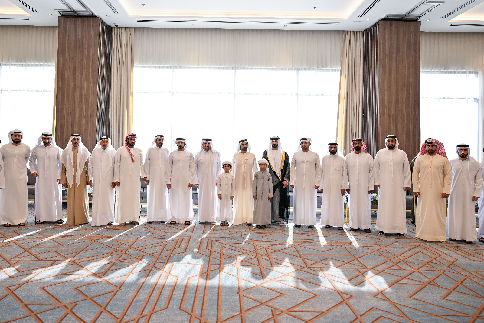 حضر صاحب السمو الشيخ محمد بن راشد آل مكتوم، نائب رئيس الدولة رئيس مجلس الوزراء حاكم دبي، رعاه الله، اليوم، يرافقه سمو الشيخ حمدان بن محمد بن راشد آل مكتوم، ولي عهد دبي، وسمو الشيخ مكتوم بن محمد بن راشد آل مكتوم، النائب الأول لحاكم دبي نائب رئيس مجلس الوزراء وزير المالية، حفل الاستقبال الذي أقامه جمال خلفان بن حويرب، بمناسبة زفاف نجله خالد على كريمة ناصر مبارك بن حرسوس المنصوري، في دبي.