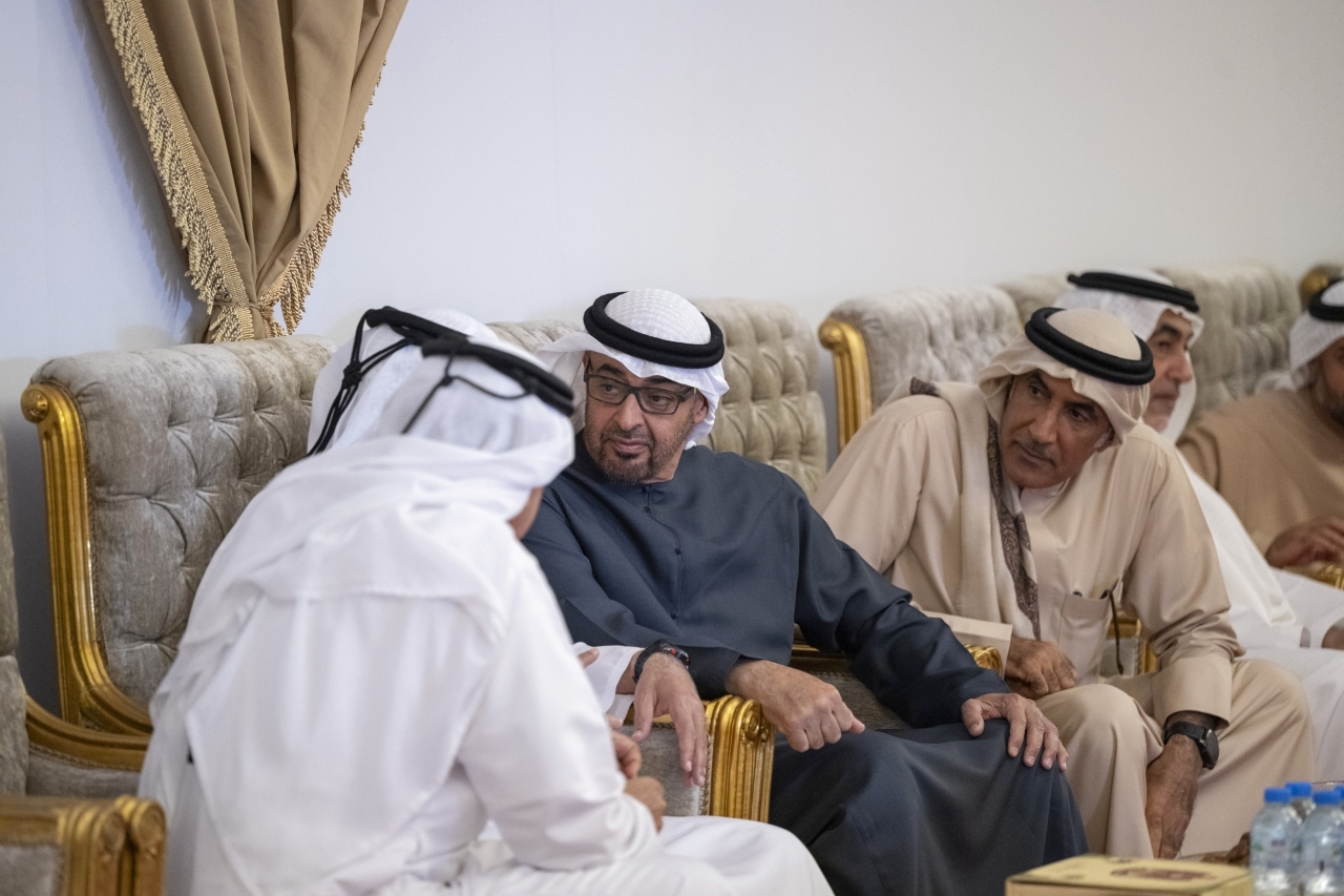 قدم صاحب السمو الشيخ محمد بن زايد آل نهيان رئيس الدولة، حفظه الله، أمس، واجب العزاء في وفاة خلفان مطر الرميثي، وذلك خلال زيارة سموه إلى مجلس العزاء في مدينة العين.