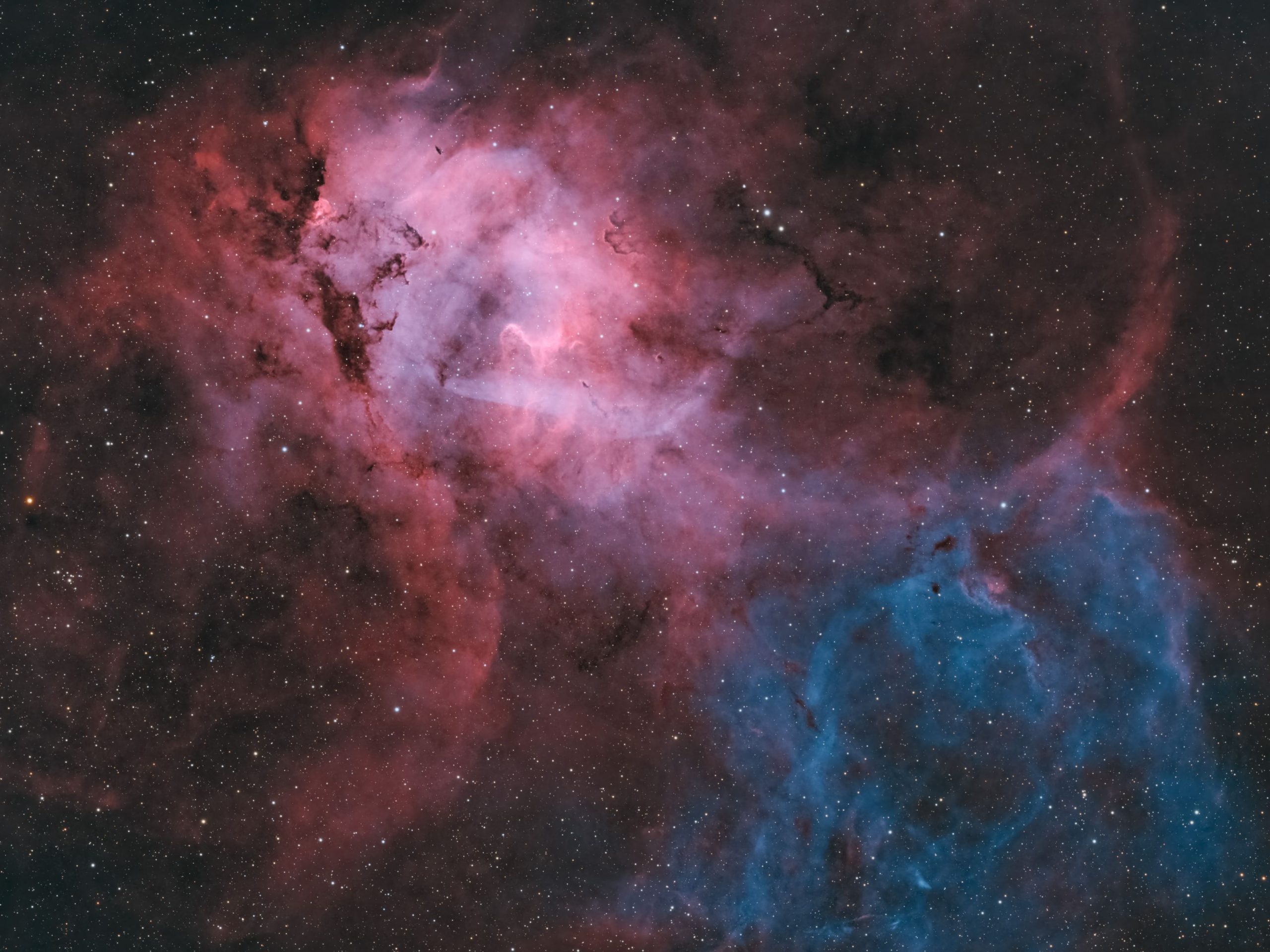 وتعكس ألوان الصورة مكونات السديم؛ إذ يمثل اللون الأحمر غاز الهيدروجين المؤين، والأزرق غاز الأكسجين المؤين، وقد تم استخدام مرشح خاص لحجب التلوث الضوئي وإبراز هذه المكونات.