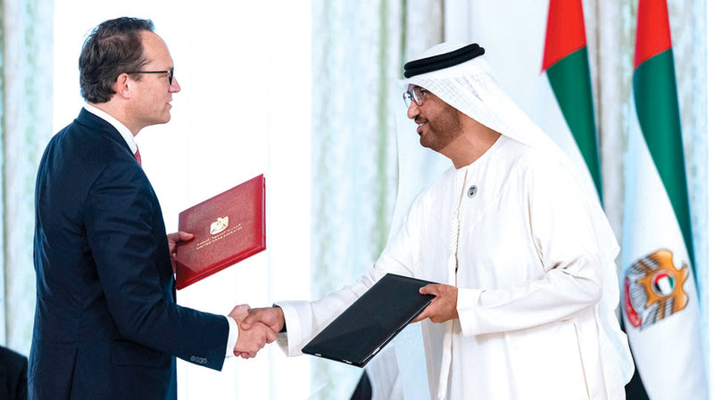 وتبادل المذكرة كل من وزير الصناعة والتكنولوجيا المتقدمة، رئيس مجلس إدارة «مصدر» الدكتور سلطان أحمد الجابر، والرئيس التنفيذي لشركة «آر دبليو إي»، الدكتور ماركوس كريبر، وذلك خلال زيارة دولة يقوم بها المستشار الألماني إلى الإمارات.