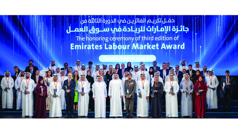 تحت رعاية سمو الشيخ منصور بن زايد آل نهيان، نائب رئيس الدولة نائب رئيس مجلس الوزراء رئيس ديوان الرئاسة، كرّم سمو الشيخ ذياب بن محمد بن زايد آل نهيان، نائب رئيس ديوان الرئاسة للشؤون التنموية وأسر الشهداء، ووزير الموارد البشرية والتوطين وزير التعليم العالي والبحث العلمي بالإنابة رئيس اللجنة الإشرافية لجائزة الإمارات للريادة في سوق العمل، الدكتور عبدالرحمن العور، الفائزين في الدورة الثالثة من الجائزة الأولى من نوعها في الدولة لتكريم الممارسات الرائدة والمتميزة في سوق العمل على مستوى شركات القطاع الخاص والقوى العاملة، خلال حفل نظَّمته الوزارة في مركز أدنيك أبوظبي.
