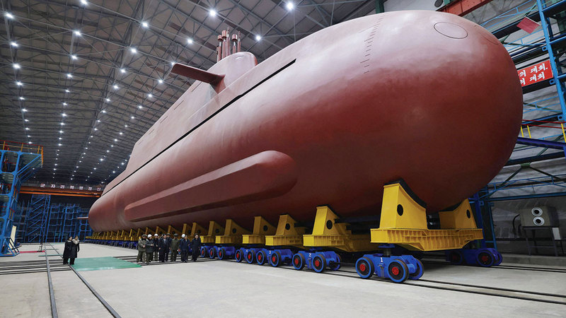 وفي مارس من العام الجاري، نشرت وسائل الإعلام الرسمية في كوريا الشمالية صوراً تظهر غواصة قيد الإنشاء، كما نشرت وسائل الإعلام الرسمية يوم الخميس الماضي صوراً لكيم وهو يتفقد الهيكل المكتمل لما وصفته بغواصة صواريخ موجهة استراتيجية تعمل بالطاقة النووية.