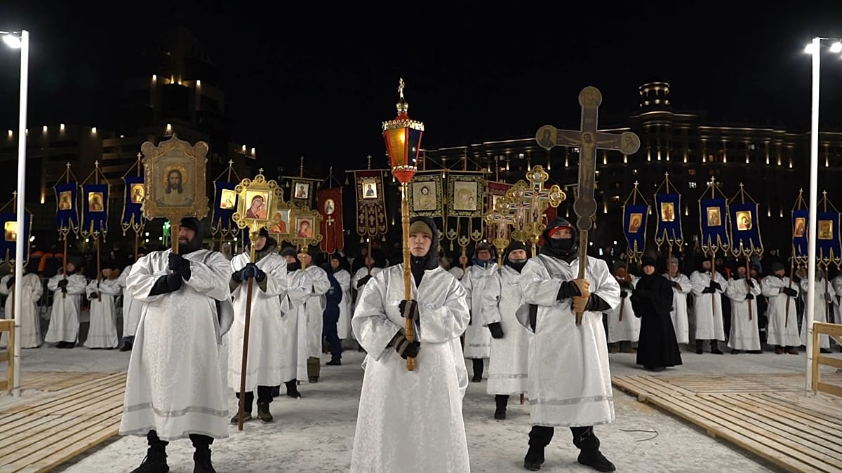 تحدى الآلاف من سكان أستانا درجات الحرارة التي تقل عن درجة التجمد لإحياء ذكرى عيد الغطاس للكنيسة الأرثوذكسية الروسية من خلال الغطس في المياه الجليدية.