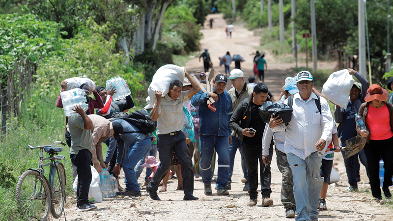 شاركها فيسبوك تويتر لينكدإن بينتيريست تيلقرام البريد الإلكتروني أشخاص يحملون مساعدات إنسانية بعد أن تعذّر عليهم العودة إلى منازلهم إثر فيضانات عزلت مناطق عدة في بوليفيا بعد هطول أمطار غزيرة في إل تورنو بمنطقة سانتا كروز.