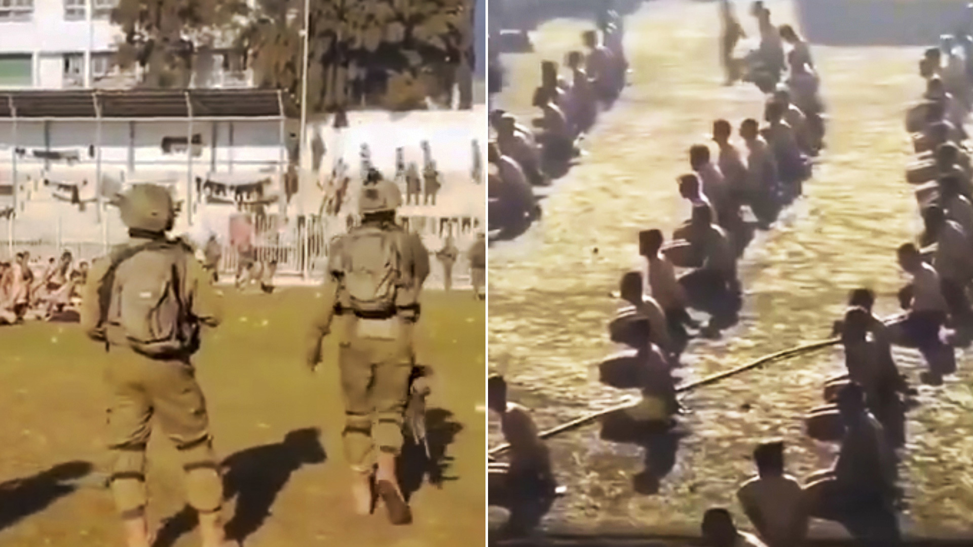 ظهر بينهم نساء وأطفال.. مشاهد صادمة لمعتقلين فلسطينيين تمت تعريتهم في أحد ملاعب #غزة #الجزيرة_مباشر #غزة_لحظة_بلحظة pic.twitter.com/YxnwkjBcA1