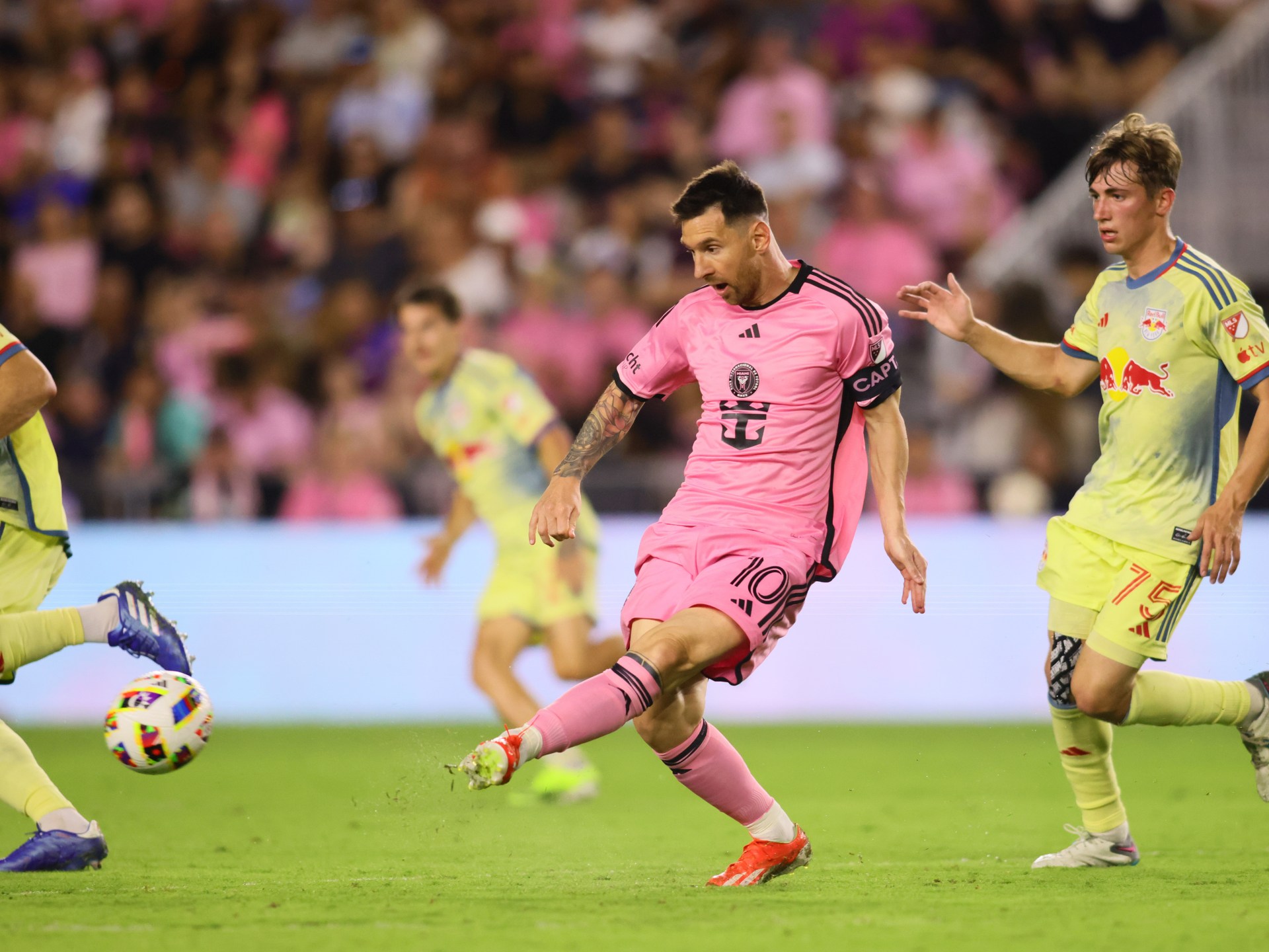 وفي مواجهة إنتر ميامي و”نيويورك ريد بولز” والتي انتهت بفوز رفقاء ميسي 6-2 فجر اليوم الأحد، أعاد ميسي الكرة ولكن هذه المرة مع زميله البارغوياني ماتياس روخاس.