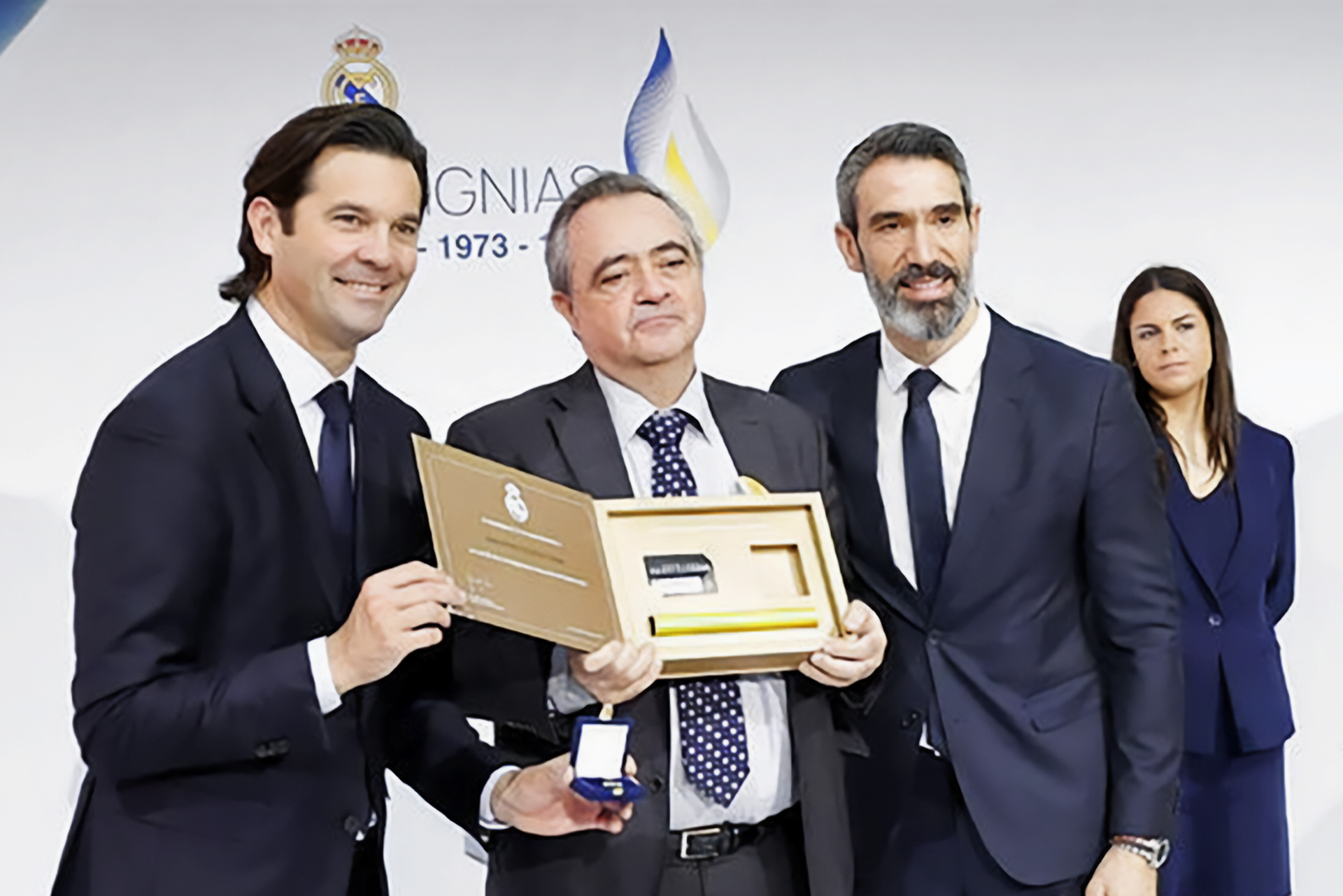 🤝✨ ريال مدريد يسلم الشارات الفضية والذهبية والذهبية الألماسية للأعضاء الذين قضوا 25 و50 و60 عاماً من الولاء المتواصل للنادي.#ريال_مدريد