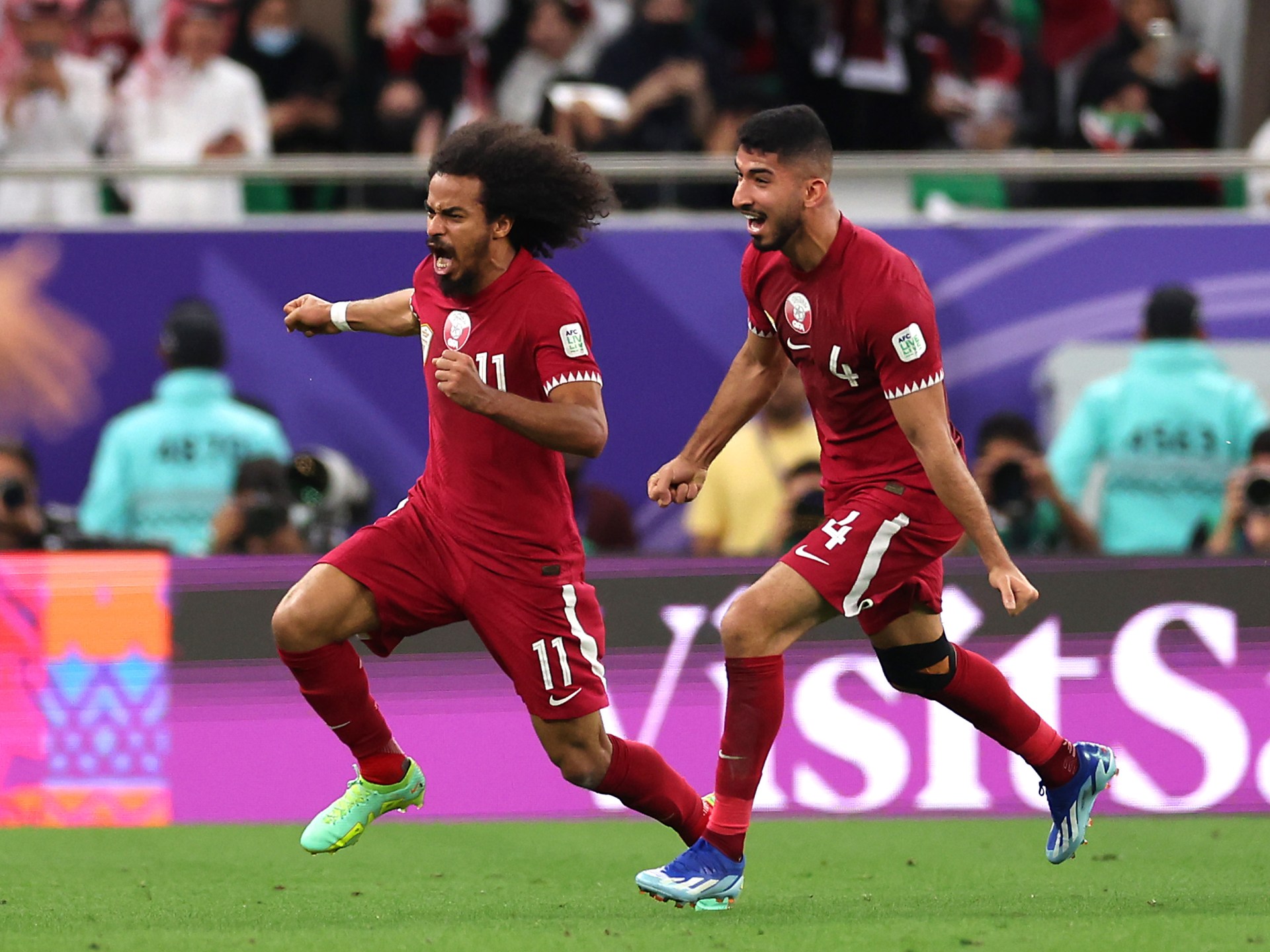 ورغم التفوق الإيراني هجوميا خلال الدقائق الأخيرة فإن المعز علي نجح في تسجيل هدف فوز قطر ليقود بلاده إلى النهائي الثاني على التوالي.