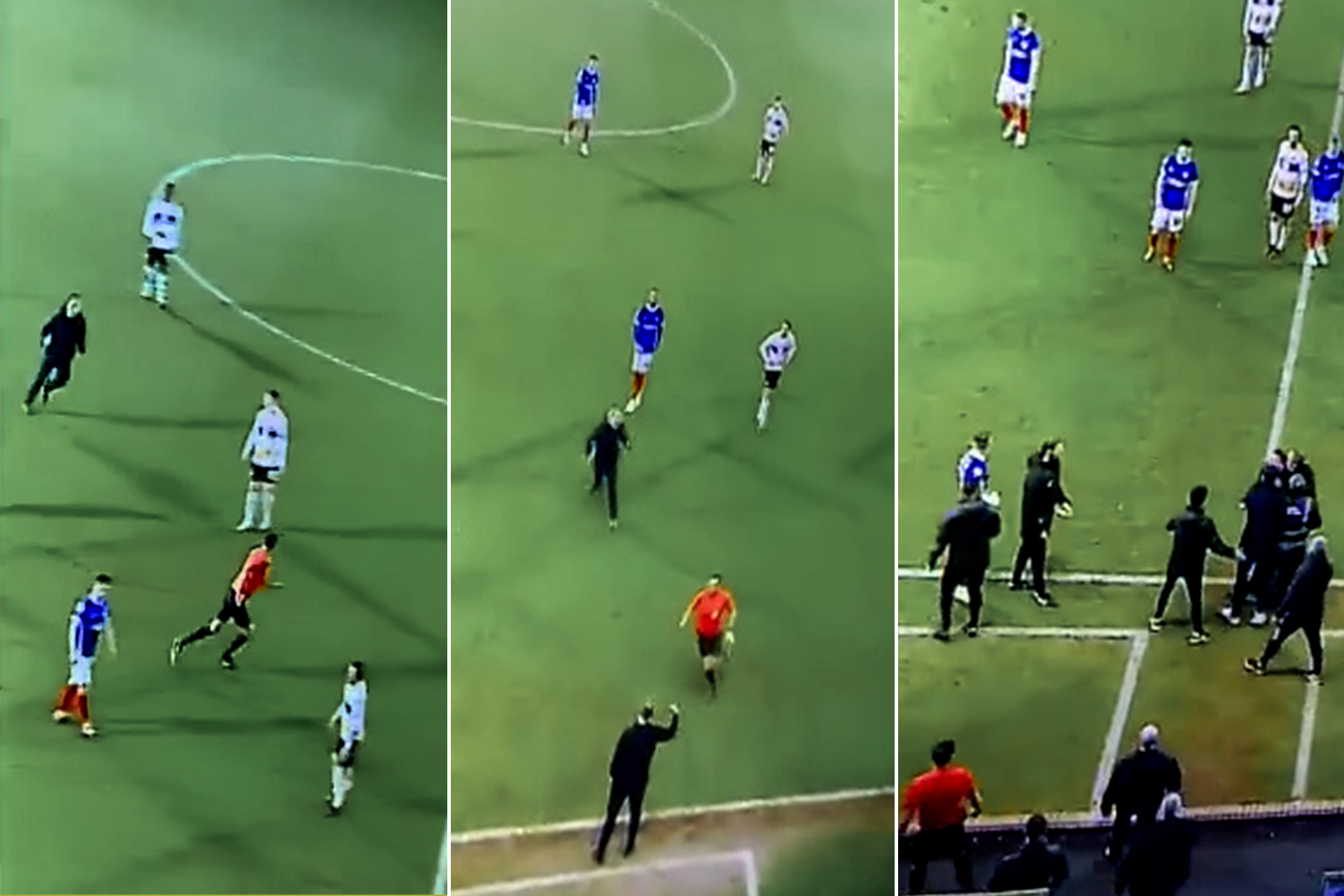 واضطر الحكم للاختباء خارج الملعب حتى تمكنت قوات الأمن من القبض على المشجع الغاضب الذي اقتحم الملعب بعد أن اضطر اللاعبون والموظفون إلى تقييده.