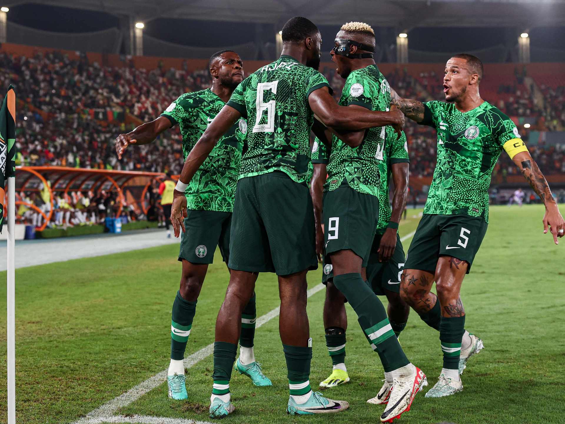 وضربت نيجيريا موعدا مع أنغولا في الدور ربع النهائي، التي فازت في وقت سابق من السبت على نامبيا 3-صفر.