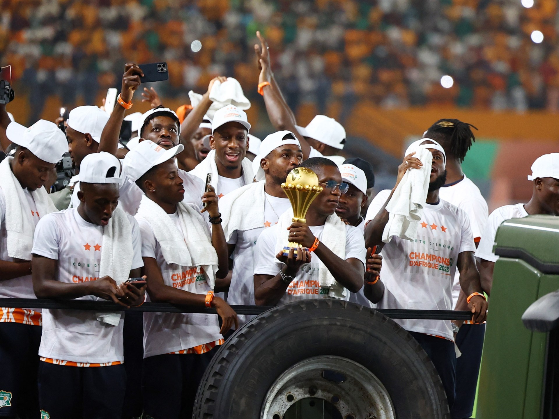 ونجح منتخب “الأفيال” في التتويج باللقب بعد الفوز على نيجيريا 2-1 -أمس الأحد- ليتوج الفريق باللقب للمرة الثالثة بعد أن حصل عليه سابقا في نسختي 1992 و2015، وبدأت الاحتفالات الكبيرة طوال الليل في أبيدجان وغيرها من المدن.