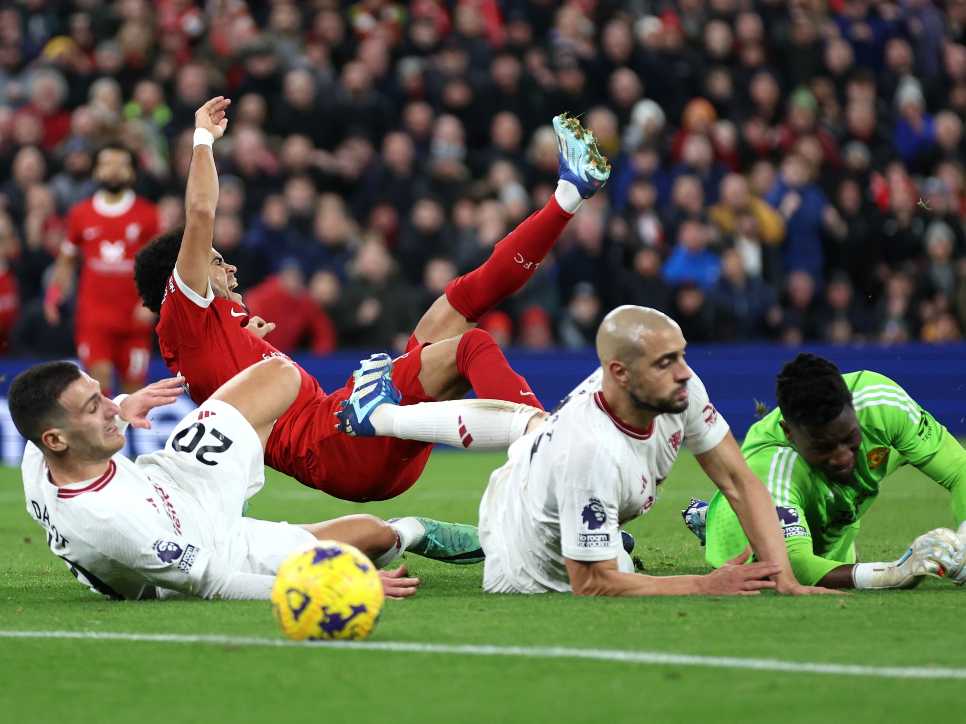 تحدى مانشستر يونايتد الغيابات التي ضربت صفوفه وتعادل مع مضيفه وغريمه التقليدي ليفربول بدون أهداف -اليوم الأحد- في قمة مباريات المرحلة الـ17 للدوري الإنجليزي الممتاز لكرة القدم.