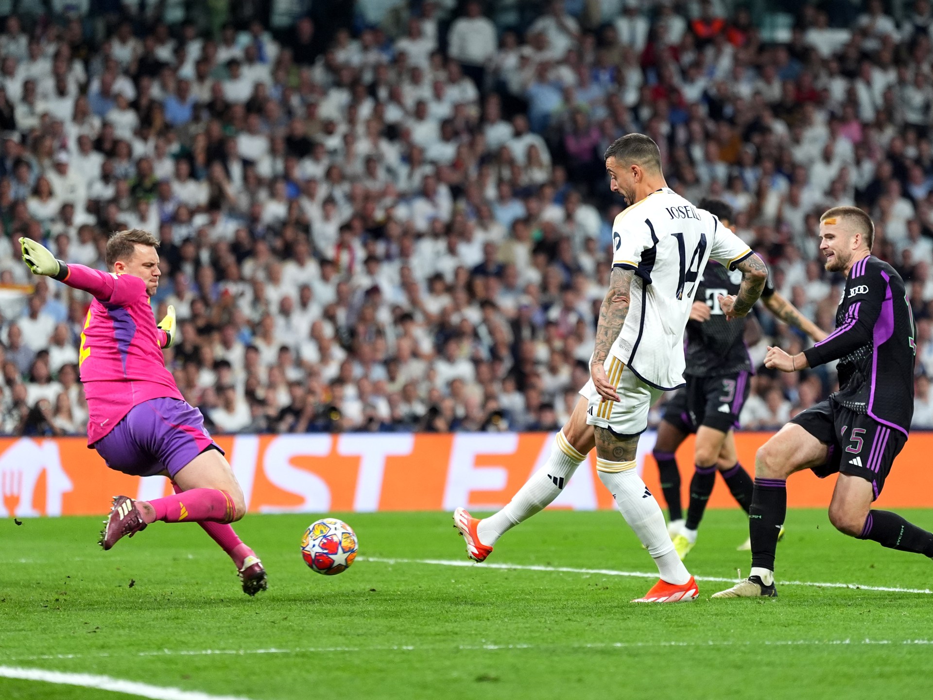 ففي الدقيقة الـ87، وبينما كان الجميع في البرنابيو يحضرون أنفسهم لخسارة الريال، يسدد فينيسيوس جونيور كرة ليست قوية من خارج منطقة الجزاء يخفق نوير في التعامل معها لتتهادى أمام خوسيلو، الذي يسجل أحد أهدافه من الثنائية التي قادت الريال إلى النهائي.