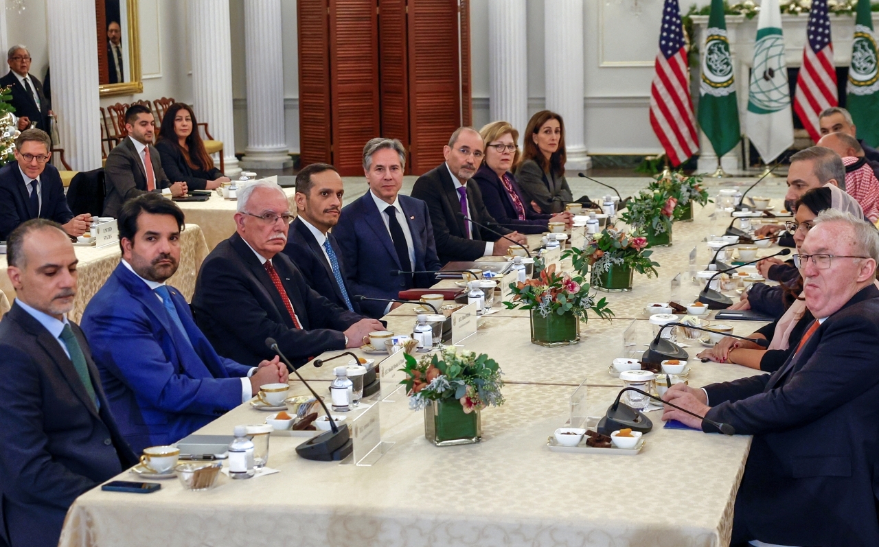 أكد وزير الخارجية الأمريكي أنتوني بلينكن، خلال لقاء وفد جامعة الدول العربية ومنظمة التعاون الإسلامي، على ضرورة منع التهجير، والحيلولة دون اتساع رقعة الصراع. فيما أكدت اللجنة الوزارية، أهمية الالتزام بالقانون الدولي والقانون الدولي الإنساني، والتصدي لها على كافة المستويات.