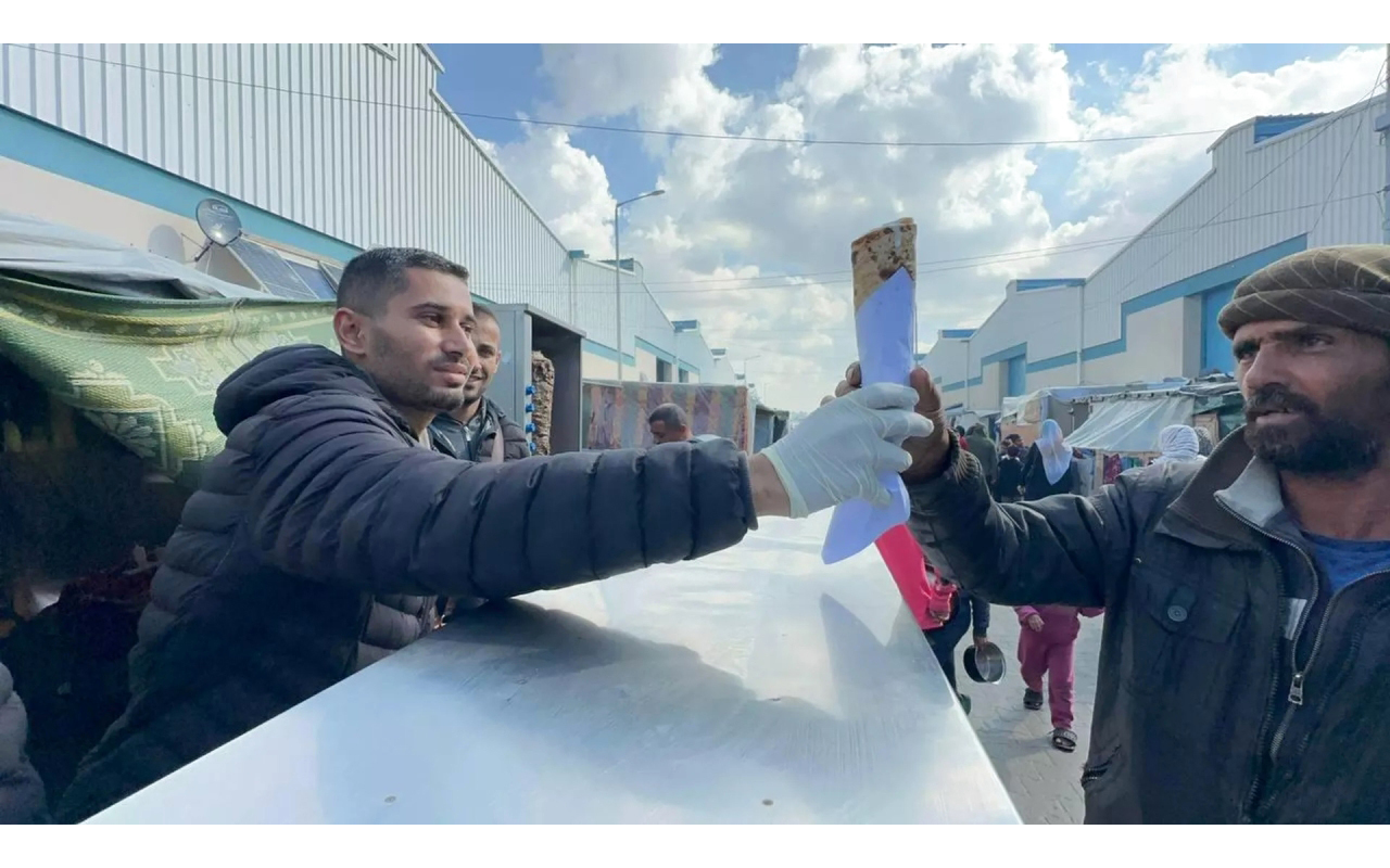 حسن الديب، نازح من مدينة غزة، خسر عمله في مطعم شاورما بسبب الحرب، فبادر إلى مساعدة والده لعمل شاورما للنازحين.