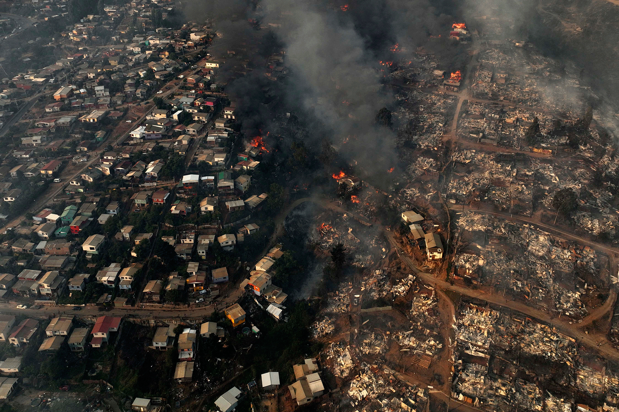 وتصاعد الدخان الأسود فوق مناطق كبيرة من إقليم فالبارايسو الذي يقطنه ما يقرب من مليون نسمة في وسط تشيلي، بينما يبذل رجال الإطفاء جهودا مضنية لإخماد النيران بالمنطقة باستخدام طائرات هليكوبتر وعربات الإطفاء.